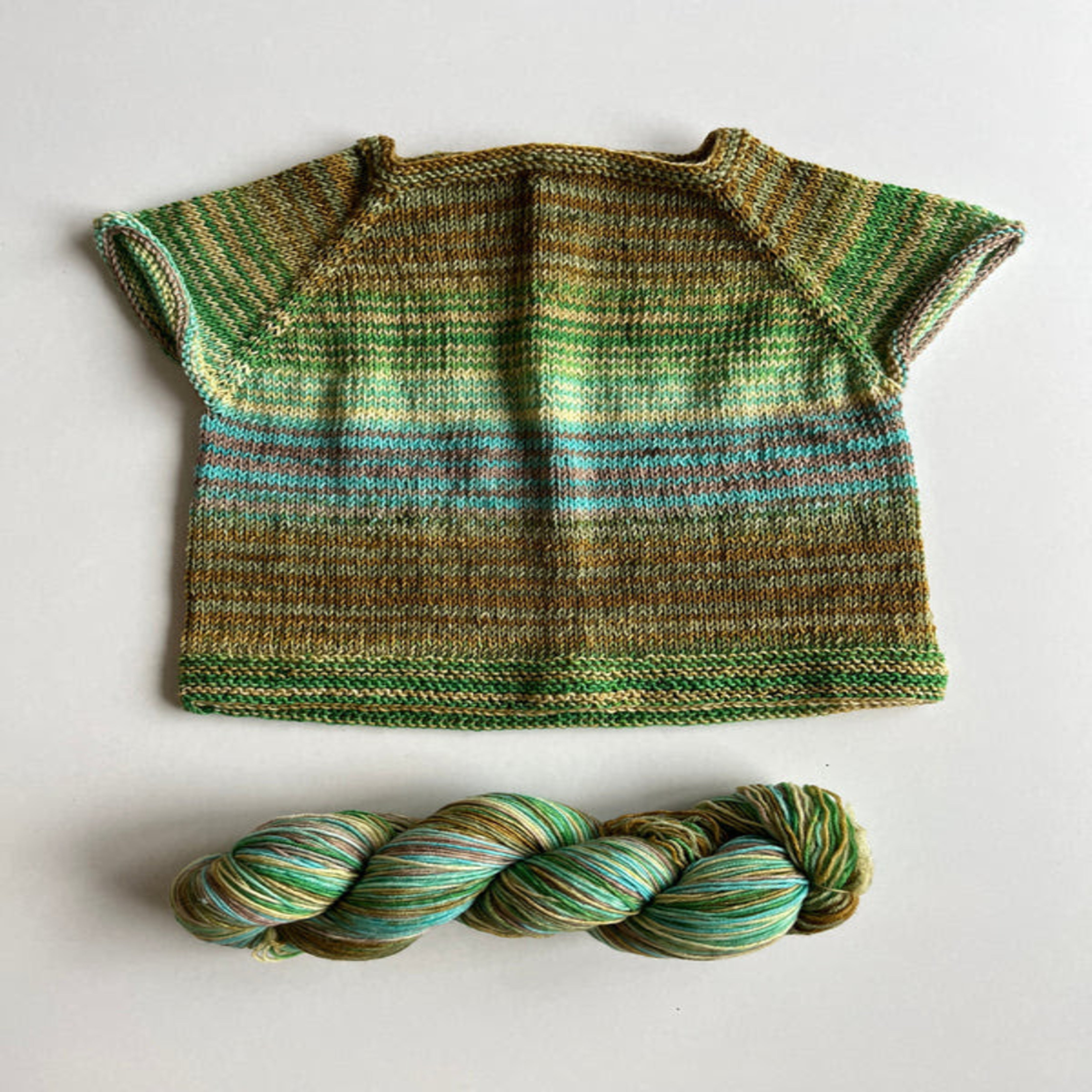 Uneek’s self-striping magic journeys through 4 sets of stripe pairs, subtly shifting between colors along the way, without the hassle of having to change yarns and weaving in all those loose ends. This yarn is a delight to work with, if just to see where the colors lead.